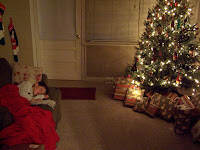 I moved him to a chair near the tree and he knocked off at 6:30am. So, we opened presents at 8AM when the rest of us got up! :)