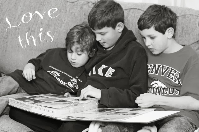 The wild boys looking through Project Life 2013.